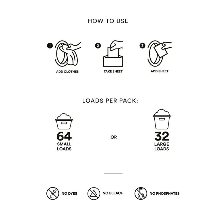 Add laundry to your washing machine. Add one sheet for a small load, two sheets for a large load. Wash!