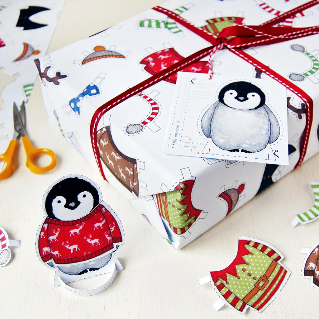 This unique and quirky 'dress up a penguin' Christmas wrapping paper set will add a lot of fun to your Christmas gifts this year.