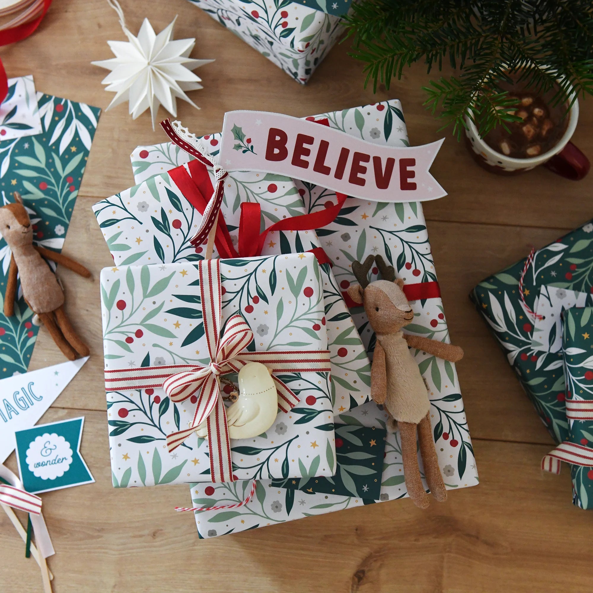 This beautiful Christmas foliage Meredith wrapping paper set is perfect for wrapping your special Christmas gifts in. It's eco-friendly and completely recyclable.